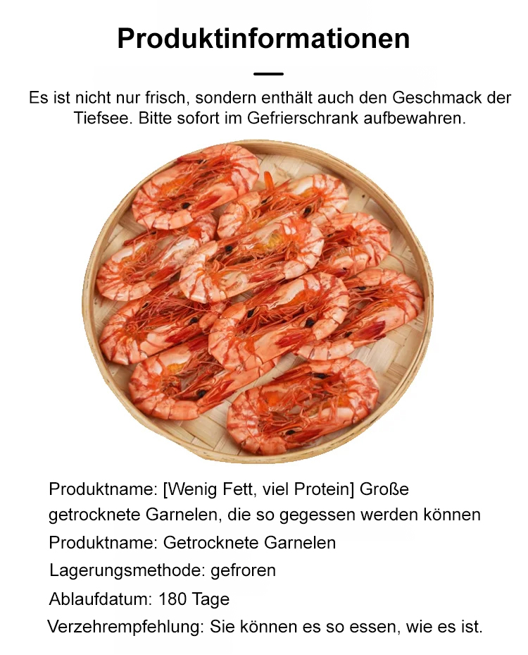 Frisch geröstete, sofort verzehrbare große Garnelensnacks