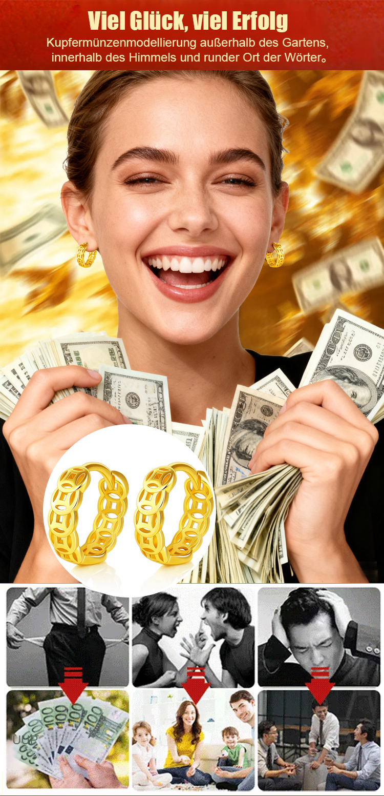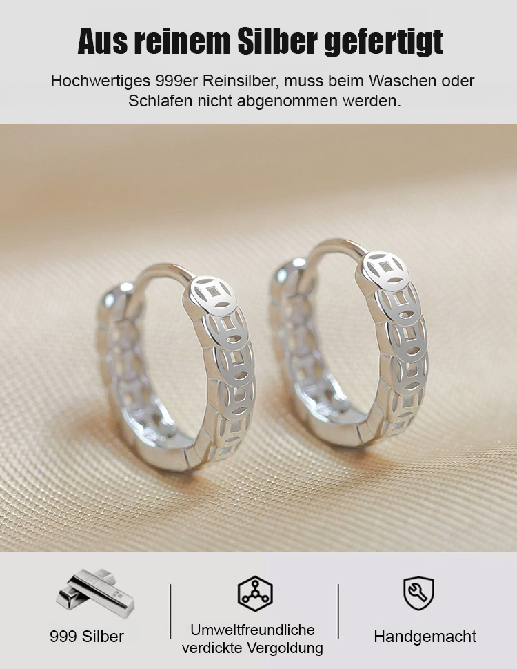 Viel Geld Ohrringe aus reinem Silber für Wohlstand und Glück.