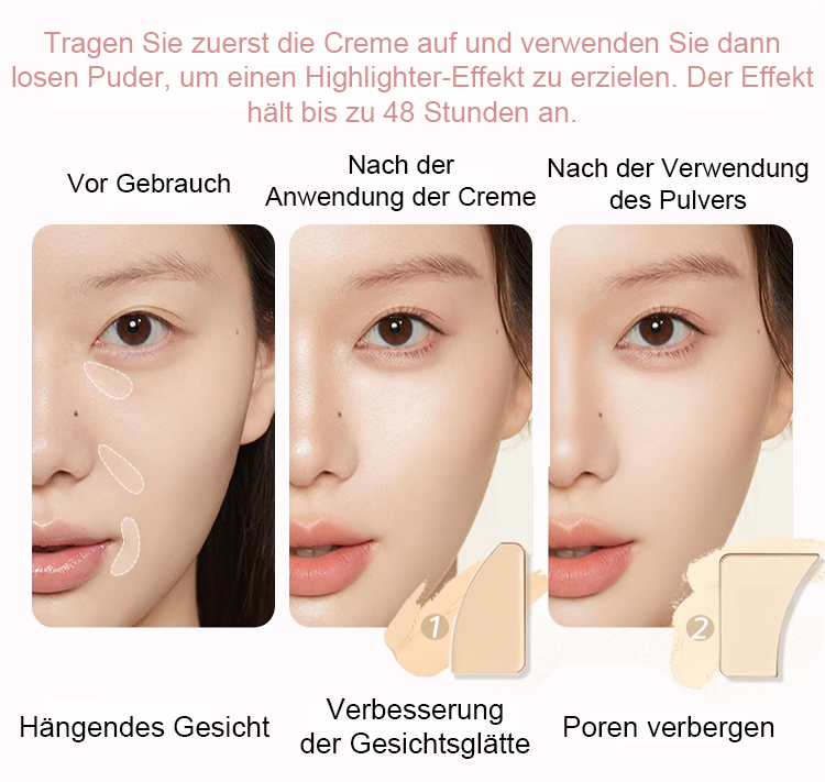 Strahlende Augen in nur 30 Sekunden – für einen wachen und jugendlichen Look! Zwei Effekte in einer Palette – sofortige Abdeckung und natürliches Highlight!
